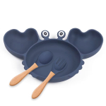 Give your baby a fun and personalized dining experience with our crab-shaped silicone baby meal set and its two engraved cutlery pieces. Not only does this set stimulate imagination and the joy of eating, but it also encourages independence and the discovery of textures and flavors.Â